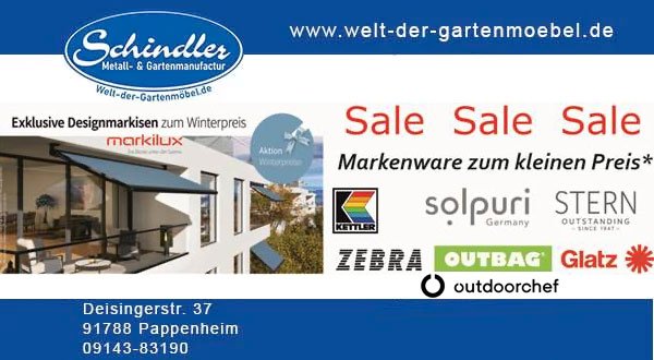 In unserem Geschäft in Pappenheim bieten wir Ihnen persönliche Beratung und eine riesige Auswahl an Gartenmöbeln, Grills und Sonnenschirmen.